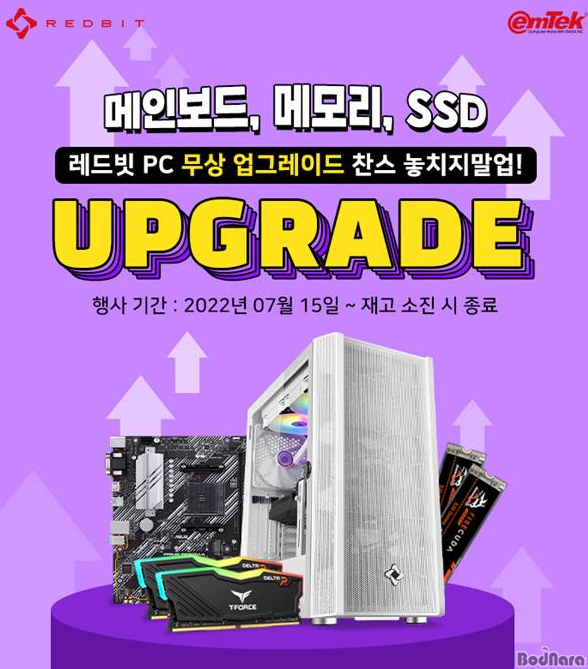 이엠텍, REDBIT 브랜드 PC 메인보드, 메모리, SSD 'UPGRADE 기획전' 진행 - 보드나라 (Bodnara)