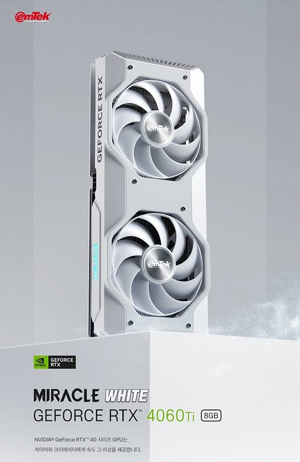 화이트 콘셉트 그래픽카드, 이엠텍 RTX 4060 Ti MIRACLE WHITE 출시 - 위클리포스트